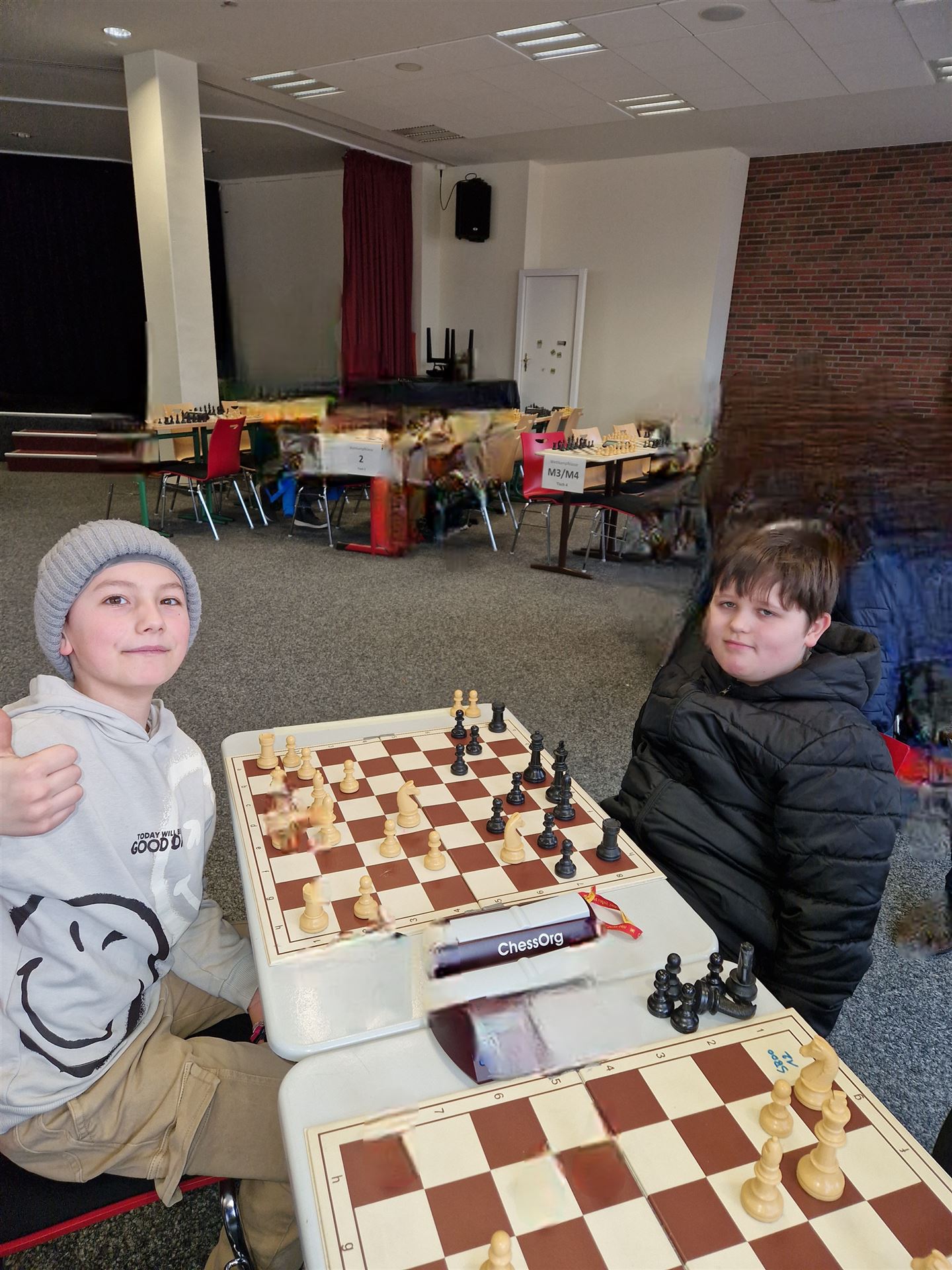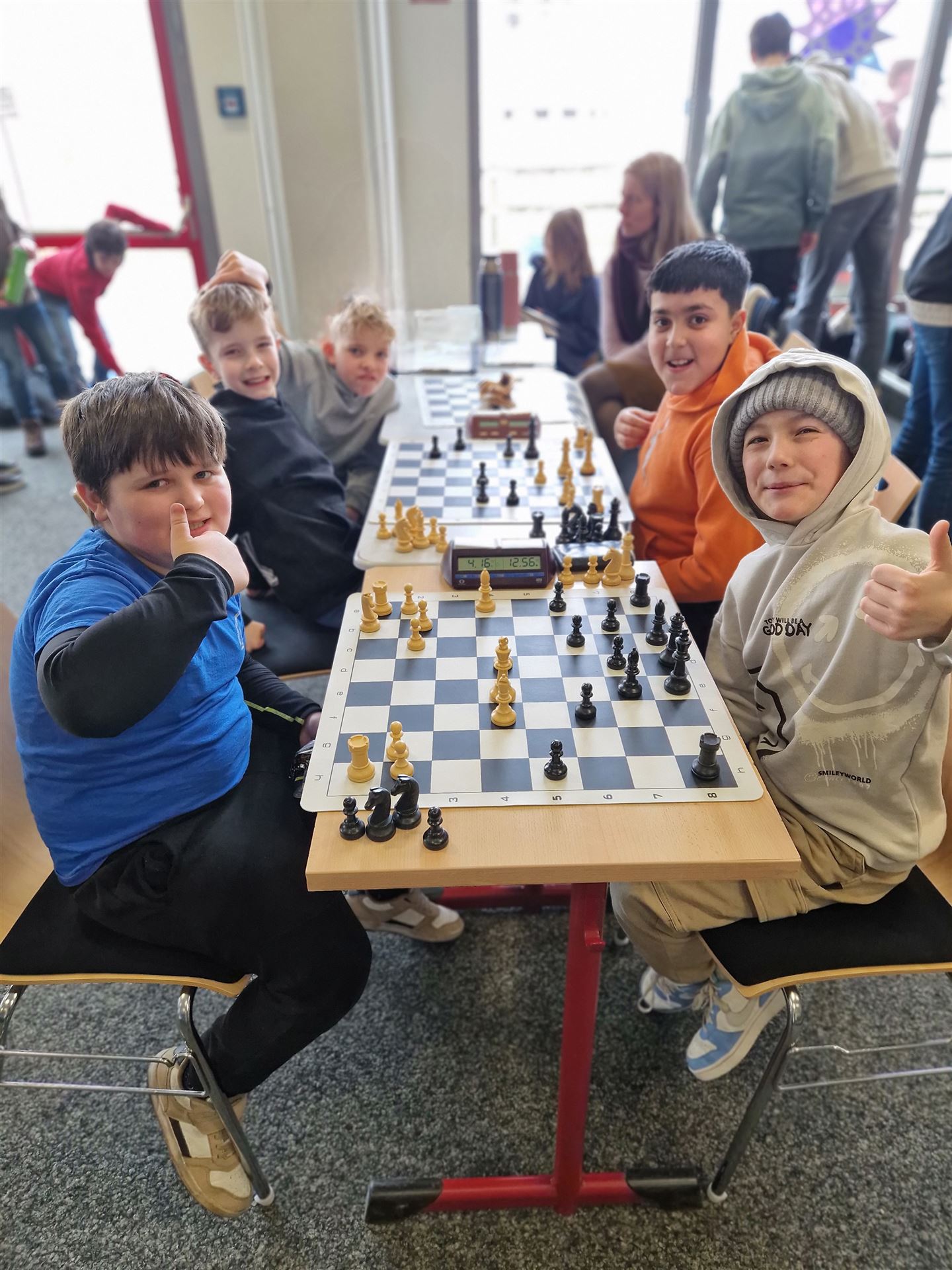 Den Kindern hat es enormen Spaß gemacht und sie haben durch diese Erfahrung viel gelernt. Sie haben das auch wirklich toll gemacht. Nach der 3. Runde von 7 waren wir zeitweise sogar auf Platz 1 und 7 . Da nach dem Schweizer System gespielt wurde, wurden die "Gegner" jedoch zunehmend stärker gewählt und wir konnten die Plätze nicht ganz halten. Der 4. und 11. Platz sind dennoch ein super Ergebnis, auf das die Kinder sehr stolz sein können. Frau Wildermann hat Ihnen viel beigebracht. Vielen Dank!