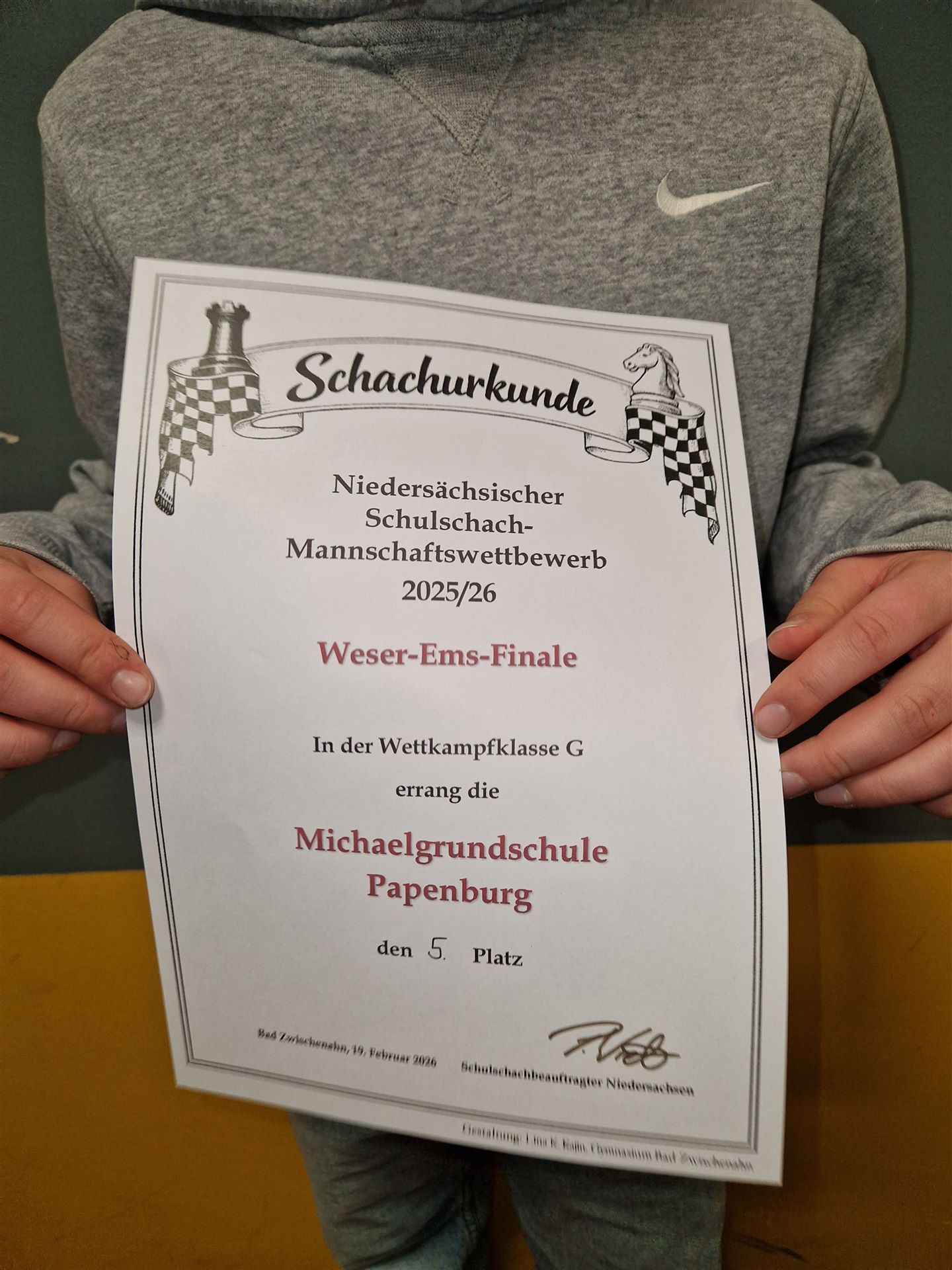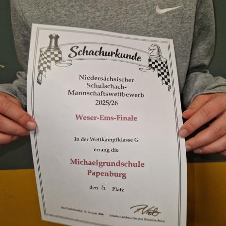 Beim Niedersächsischen Schulschach- Mannschaftswettbewerb in Bad Zwischenahn erreichte die Schulmannschaft einen tollen 5. Platz. Herzlichen Glückwunsch!